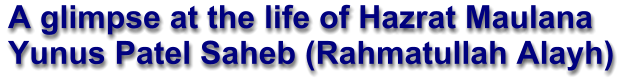 [Alhamdulillah, work on Hazrat Maulana Yunus Patel (Rahmatullah Alayh)’s complete biography has commenced. Insha-Allah, this will be published in due time.]