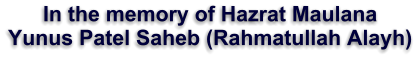 In the memory of Hazrat Maulana Yunus Patel Saheb (Rahmatullah Alayh)